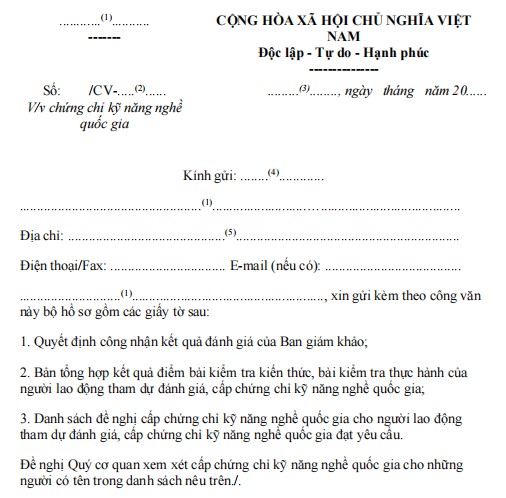 1. Văn bản đề nghị công nhận kỹ năng nghề quốc gia