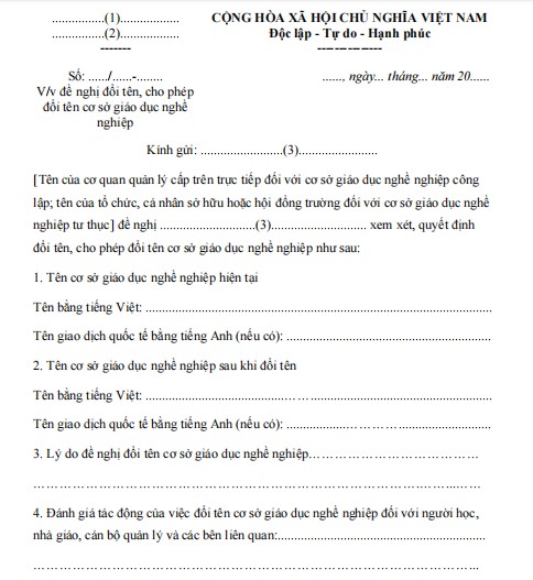 1. Văn bản đề nghị đổi tên, cho phép đổi tên cơ sở giáo dục nghề nghiệp