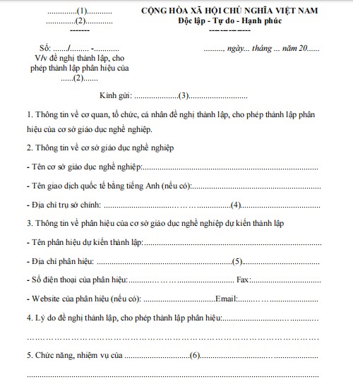 Mẫu đề nghị thành lập phân hiệu cơ sở giáo dục nghề nghiệp mới nhất