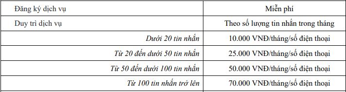 | Phí đăng ký sử dụng dịch vụ | Miễn phí |