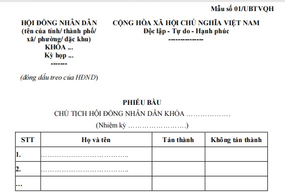 1. Phiếu bầu Chủ tịch Hội đồng nhân dân