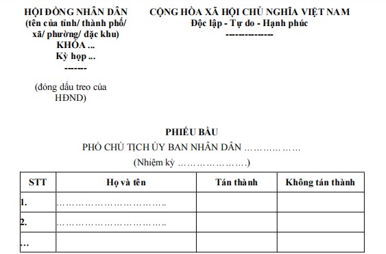 Phiếu bầu phó chủ tịch Ủy ban nhân dân