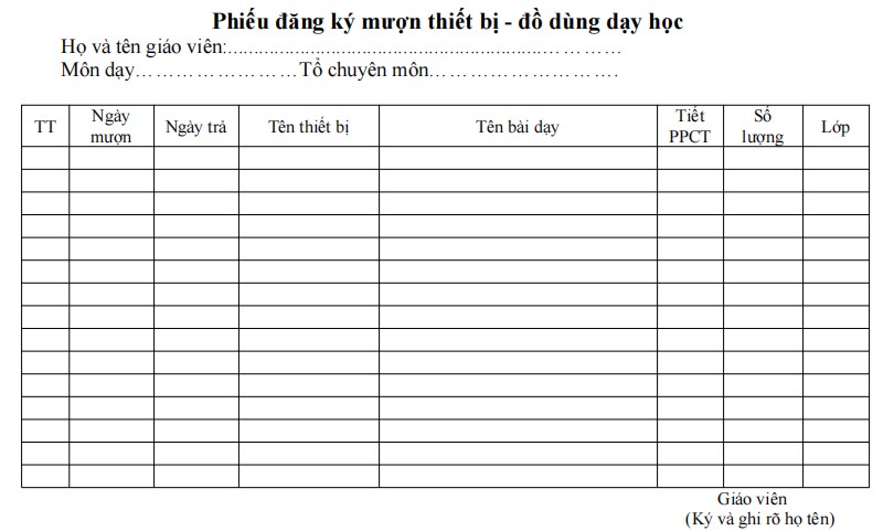 Phiếu đăng ký mượn thiết bị - đồ dùng dạy học