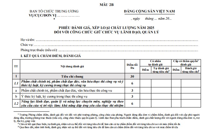 1. Mẫu đánh giá, xếp loại chất lượng năm 2025 đối với công chức giữ chức vụ lãnh đạo, quản lý