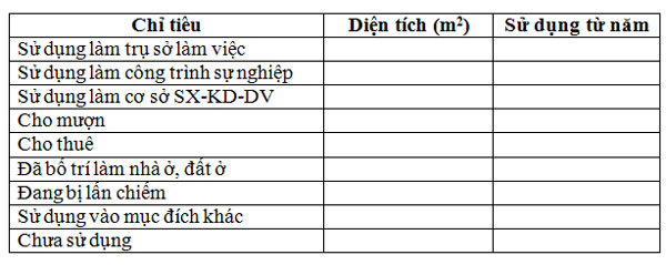TỜ KHAI HIỆN TRẠNG SỬ DỤNG NHÀ, ĐẤT THUỘC SỞ HỮU NHÀ NƯỚC VÀ ĐỀ XUẤT PHƯƠNG ÁN XỬ LÝ