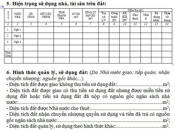 Mẫu tờ khai hiện trạng sử dụng nhà, đất thuộc sở hữu nhà nước và đề xuất phương án xử lý