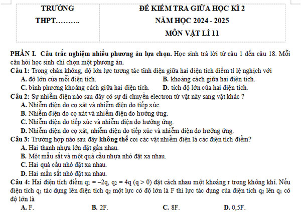 Hoatieu.vn xin chia sẻ đến các bạn Bộ đề thi giữa học kì 2 môn Vật lí 11 năm 2024 - 2025 (Sách mới) được biên soạn theo cấu trúc mới nhất, bám sát chương trình học và định hướng ra đề theo Công văn 7991/BGDĐT-GDTrH. Các đề thi được thiết kế đa dạng với nhiều dạng câu hỏi như trắc nghiệm khách quan lựa chọn đáp án đúng, trắc nghiệm đúng – sai và câu hỏi trả lời ngắn. Hệ thống câu hỏi trong các đề không chỉ giúp học sinh ôn tập hiệu quả mà còn hỗ trợ các em rèn luyện kỹ năng làm bài, củng cố kiến thức và nâng cao khả năng tư duy.