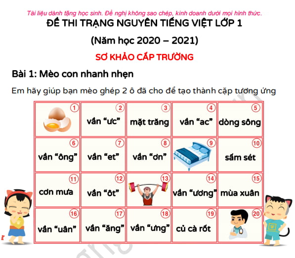 Đề thi trạng nguyên tiếng việt lớp 1 cấp trường