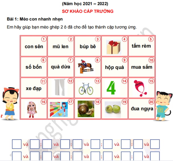 Lưu ý: Đề thi TNTV lớp 1 cấp trường năm học 2024-2025 do giáo viên các trường học chia sẻ, có cả gợi ý đáp án, không phải đề thi chính thức do BTC công bố.