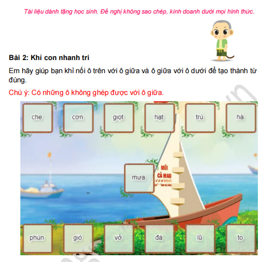- Kết hợp các tiếng để tạo thành từ, kết hợp các từ để tạo thành câu
