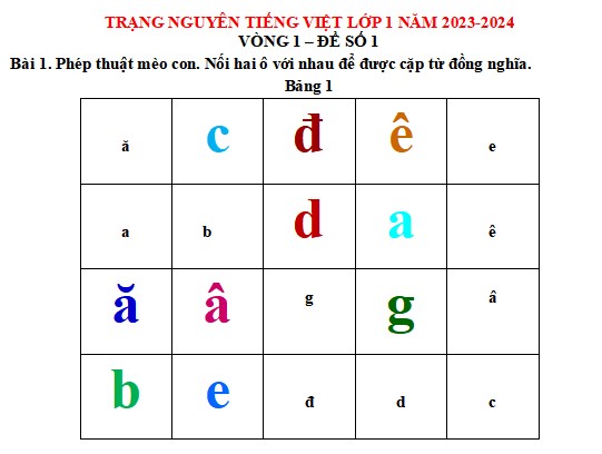 1. Đề thi Trạng nguyên Tiếng Việt lớp 1 năm 2024-2025