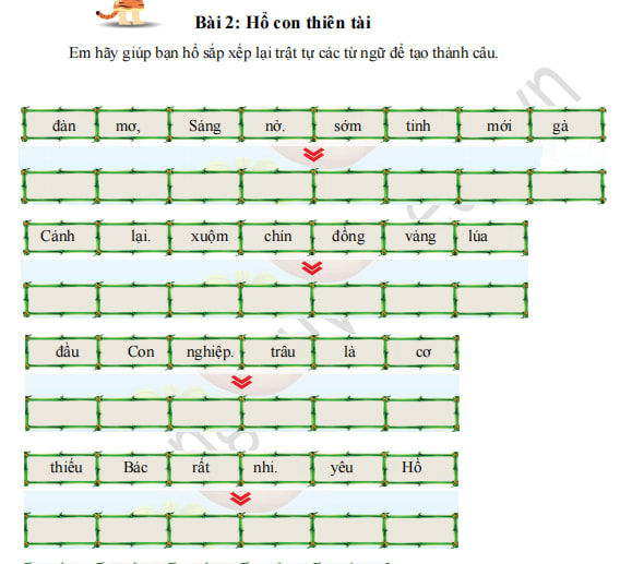- Sắp xếp các chữ để tạo thành từ, sắp xếp các từ để tạo thành câu, sắp xếp các ý để tạo thành câu chuyện hoàn chỉnh