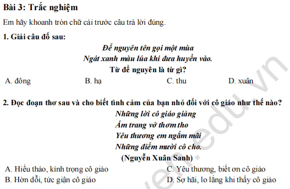 - Tổng hợp câu đố, đề thi TNTV lớp 2