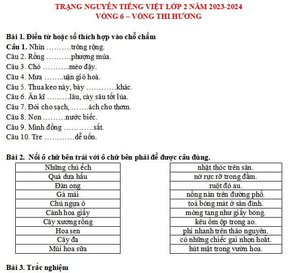 TRẠNG NGUYÊN TIẾNG VIỆT LỚP 2 VÒNG 1 NĂM 2023-2024