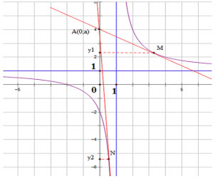 Vì A(a,b) thuộc tiếp tuyến nên thay tọa độ A vào phương trình ta có:
