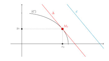 Tiếp tuyến của một đường cong tại một điểm bất kì thuộc đường cong là một đường thẳng chỉ "chạm" vào đường cong tại điểm đó. Tiếp tuyến như một đường thẳng nối một cặp điểm gần nhau vô hạn trên đường cong. Chính xác hơn, một đường thẳng là một tiếp tuyến của đường cong y = f (x) tại điểm x = c trên đường cong nếu đường thẳng đó đi qua điểm (c, f (c)) trên đường cong và có độ dốc f '(c) với f ' là đạo hàm của f.