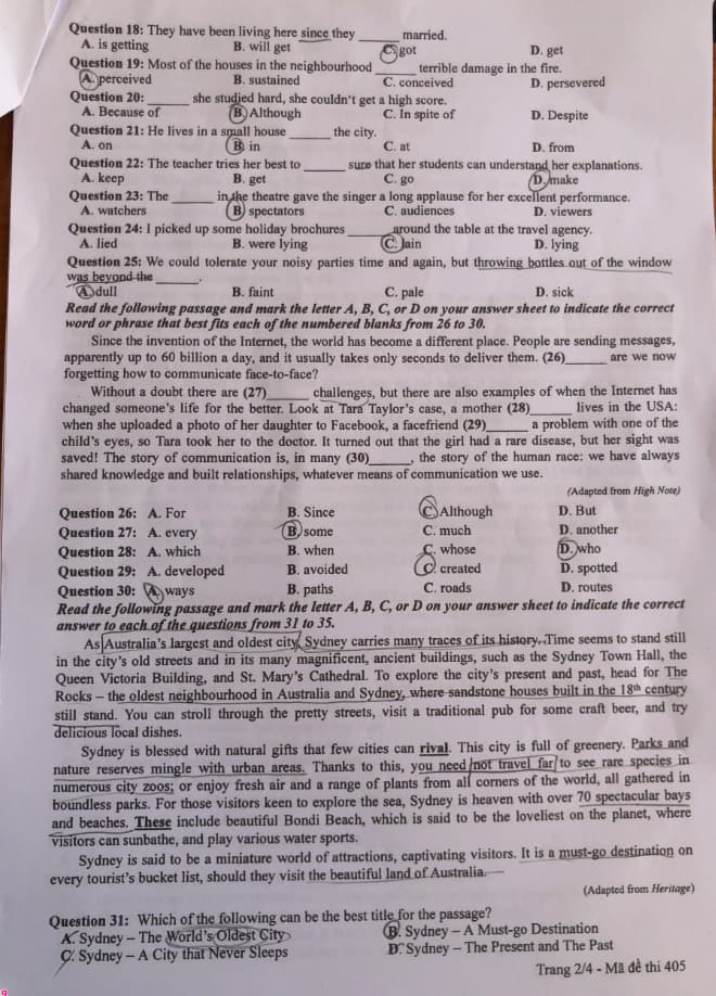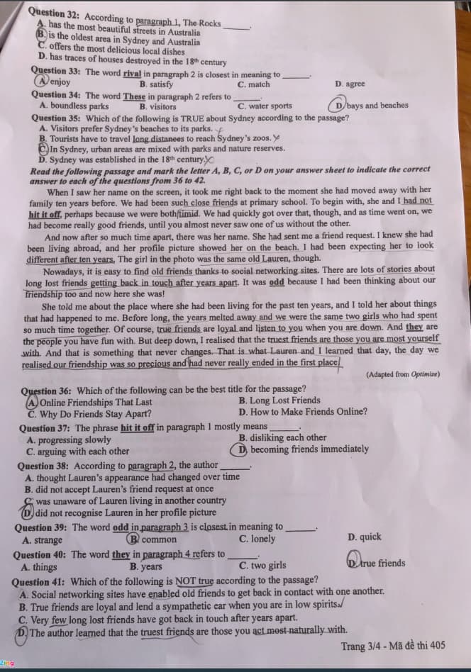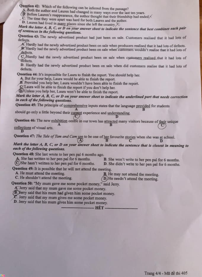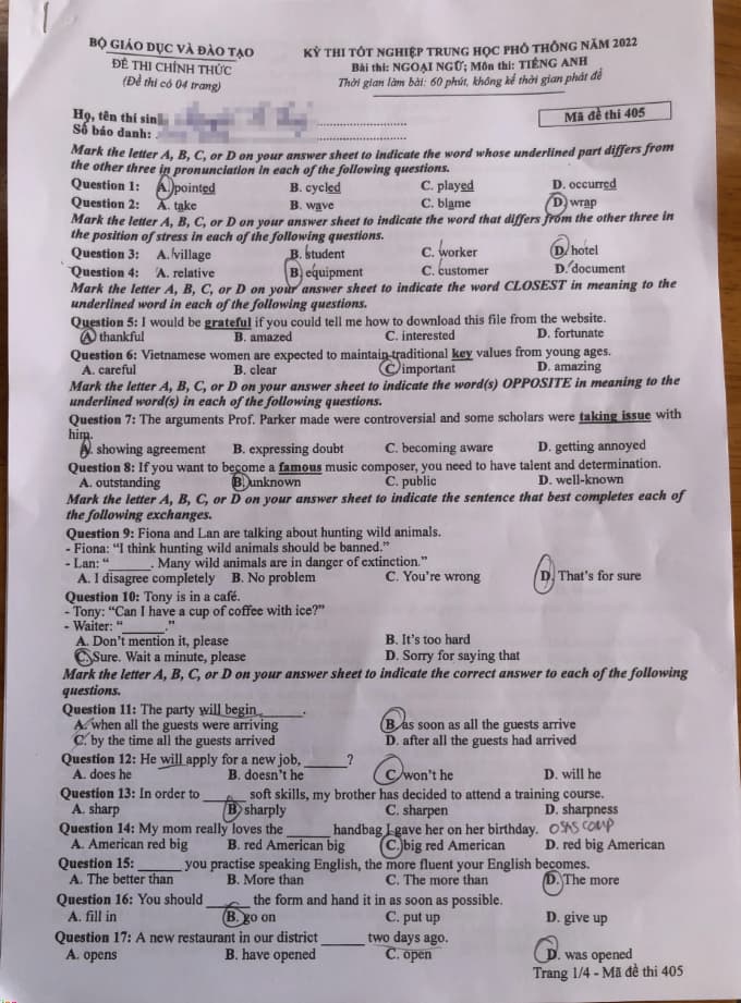 Đề thi THPT Quốc gia môn Tiếng Anh năm 2022 - Mã đề 405