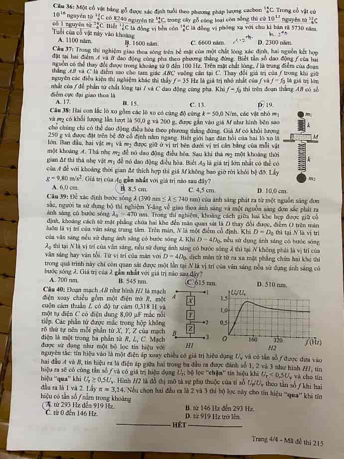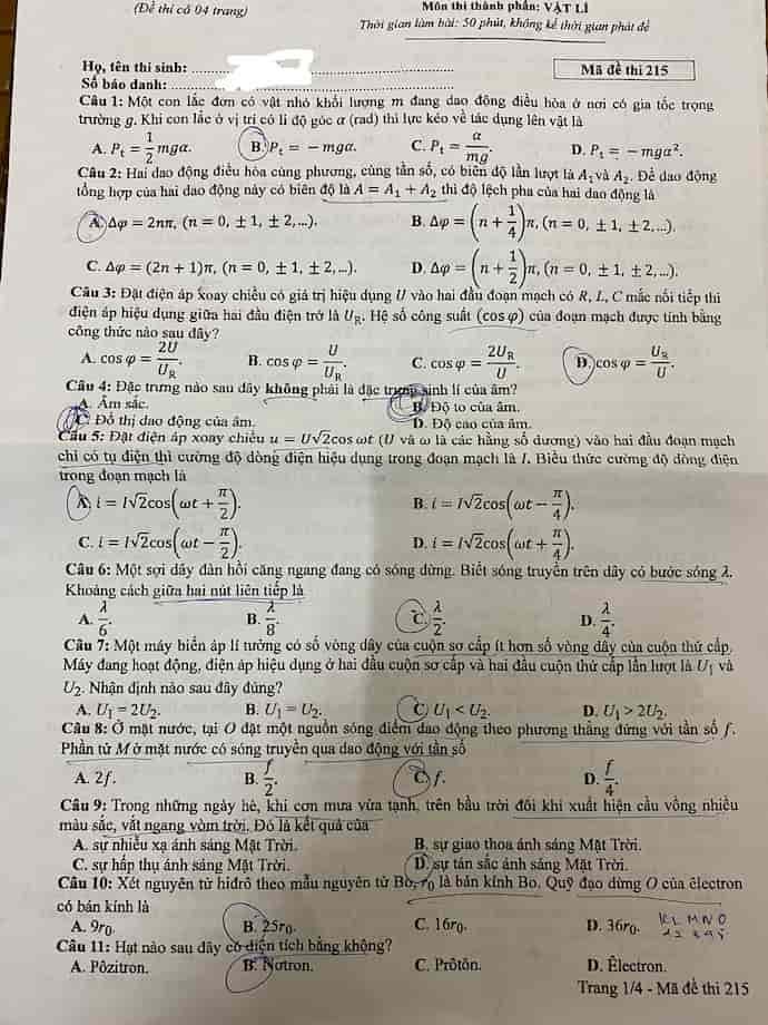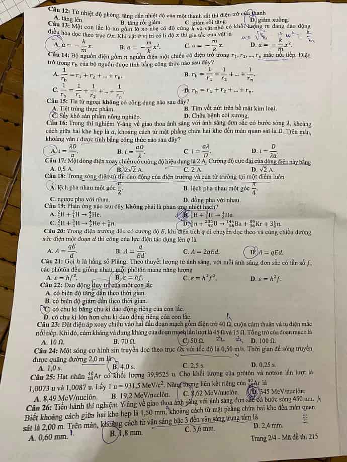 Các bạn F5 liên tục và mở cửa sổ ẩn danh để cập nhập Đáp án chi tiết đề Vật lý THPT Quốc gia 2025 nhanh nhất.