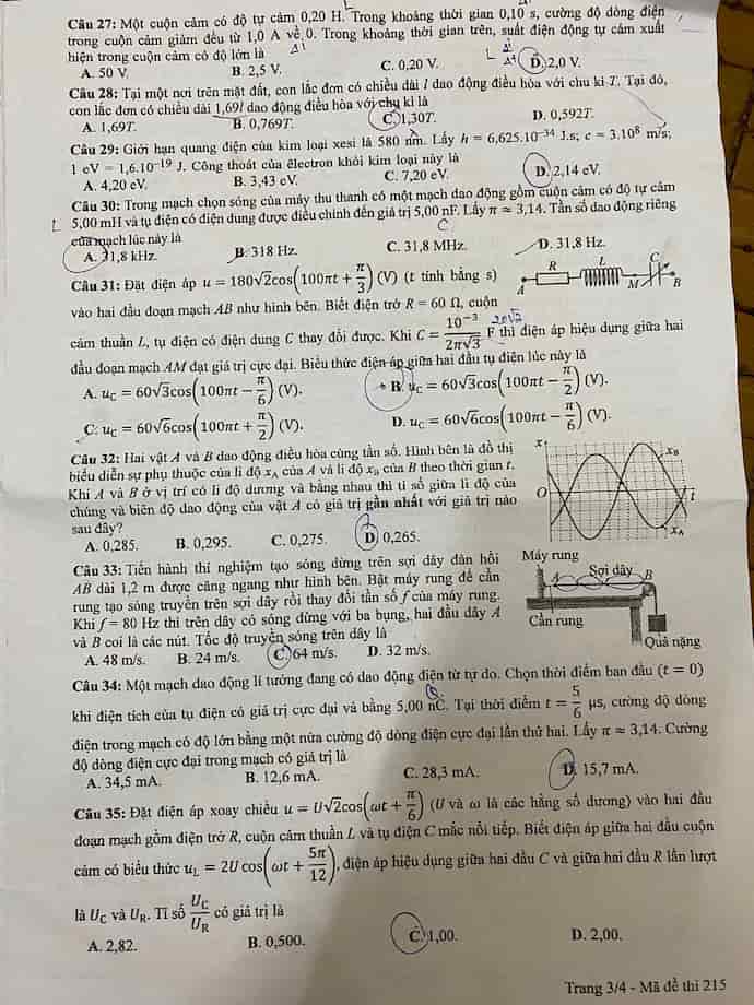 Đáp án chi tiết môn Vật Lý thi THPT quốc gia 2025 (Full 48 mã đề)