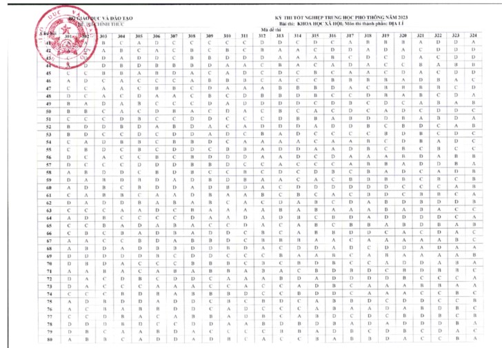 4. Đáp án Địa THPT quốc gia 2023 chính thức
