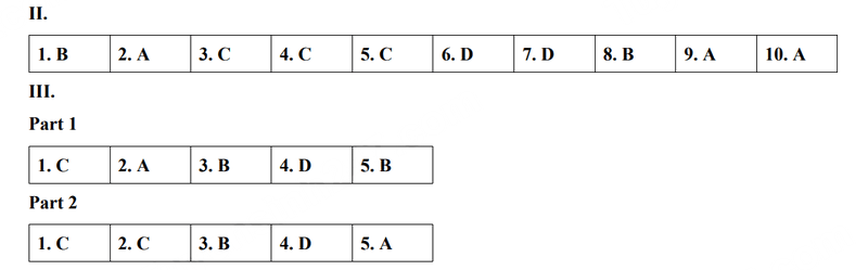 Chi tiết đáp án và đề thi mời các bạn xem trong file tải về.