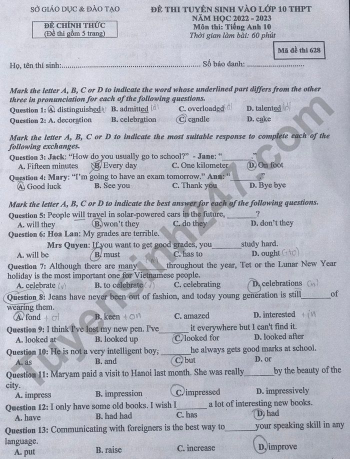 Đề thi sẽ được Hoatieu chia sẻ ngay sau khi kết thúc kì thi chính thức.
