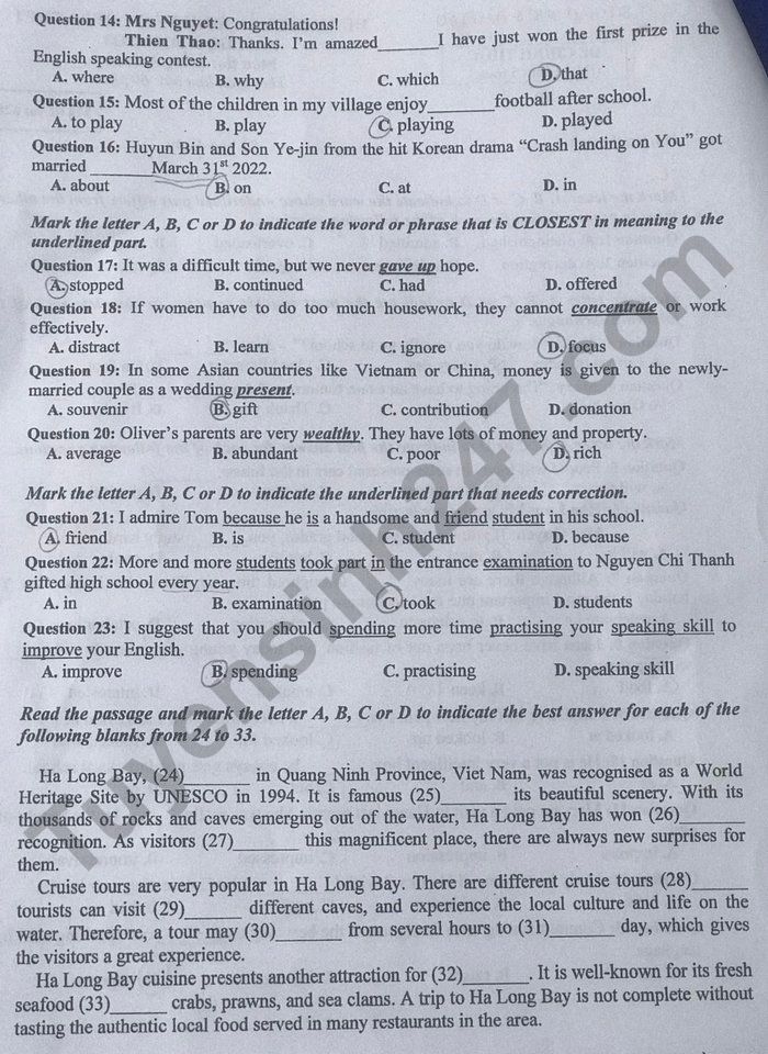 - Đáp án đề thi vào 10 môn Anh Đắk Nông 2022