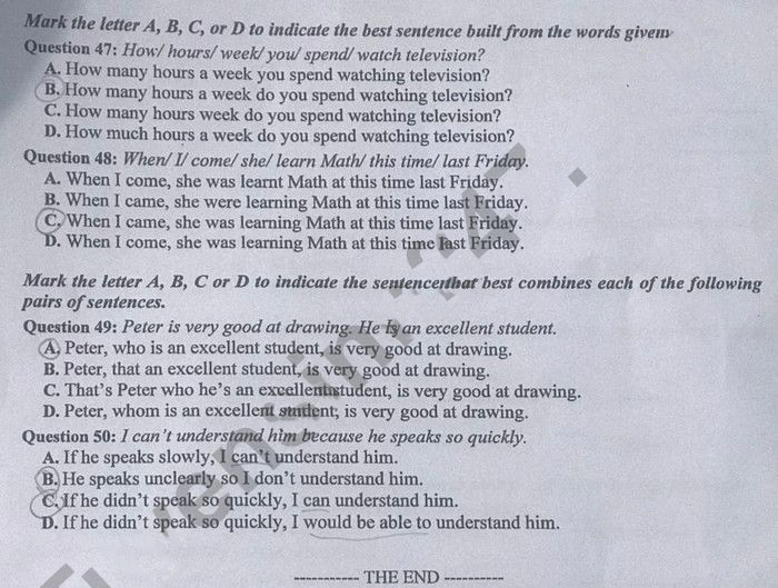 Mark the letter A, B, C or D to indicate the sentence that best combines each of the following pairs of sentences.