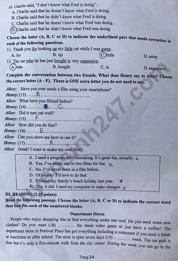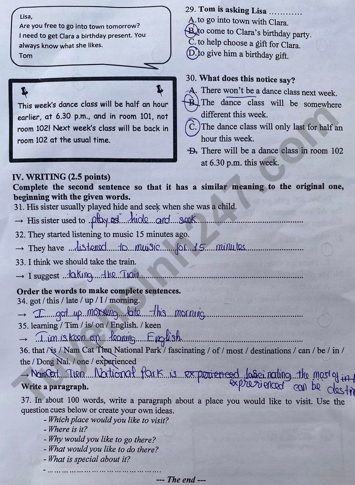 - 7. Đáp án đề thi vào 10 2022 môn Anh Đồng Nai