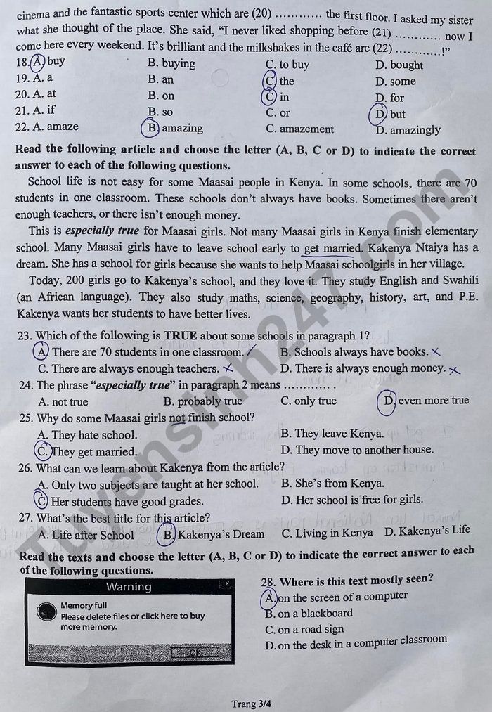 3. Đáp án đề thi tuyển sinh lớp 10 môn Anh Đồng Nai 2024