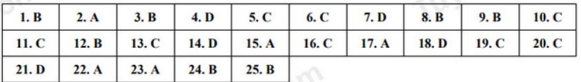 | 21.C | 22.B | 23.B | 24.C | 25.D |