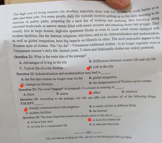 - Đáp án đề thi vào lớp 10 năm 2021 môn Anh Tp Hải Phòng