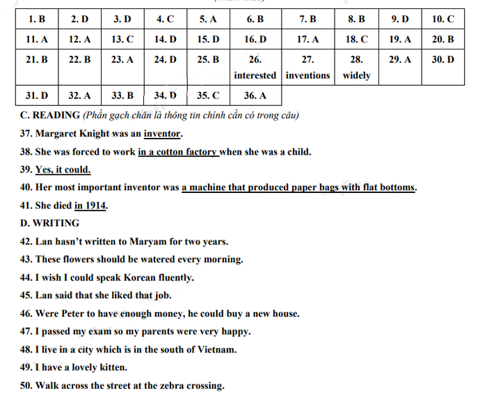 - 9. Đáp án đề thi vào lớp 10 năm 2021 môn Anh tỉnh Sóc Trăng