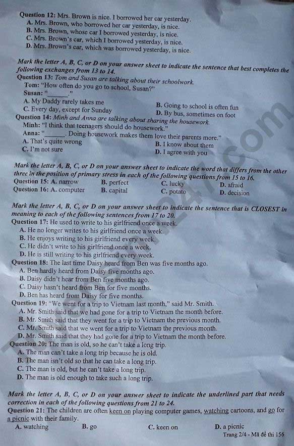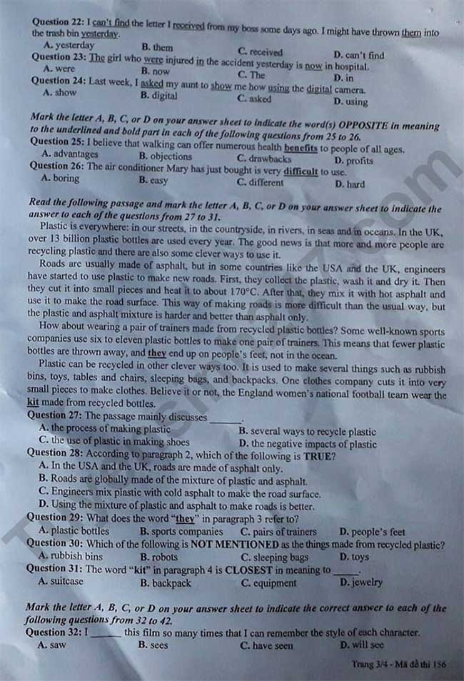 - Đề thi thử Tiếng Anh vào 10 TP HCM có đáp án