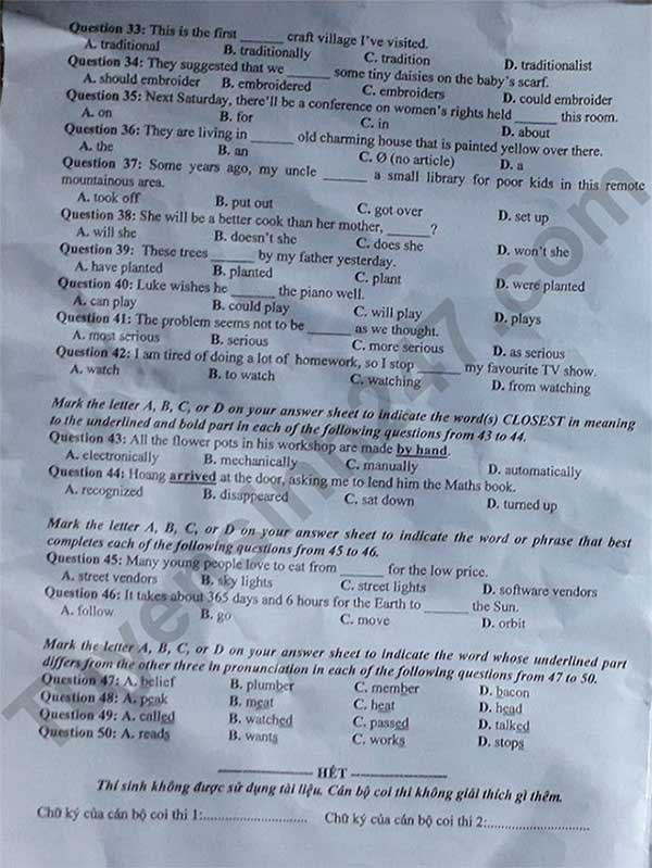 ĐỀ CHÍNH THỨC