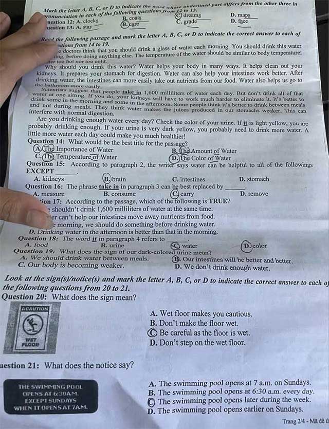 Question 20: A. healthy B. strong C. sick D. lazy