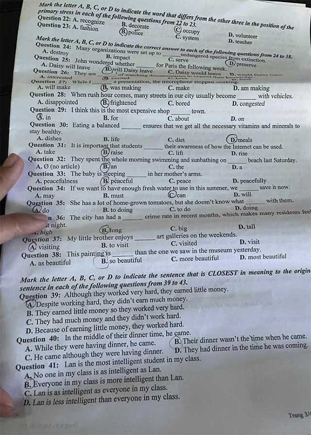 Question 22: A. to’night B. ‘wedding C. ‘flower D. ‘candle