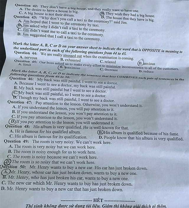 5. Đáp án đề thi tuyển sinh môn Anh 2023 Thừa Thiên Huế