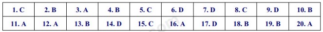 | 11.D | 12.A | 13.C | 14.D | 15.B | 16.B | 17.B | 18.B | 19.C | 20.A |