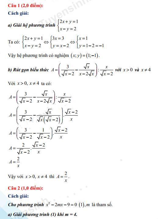 2. Đáp án đề thi Toán vào 10 Bắc Giang 2024