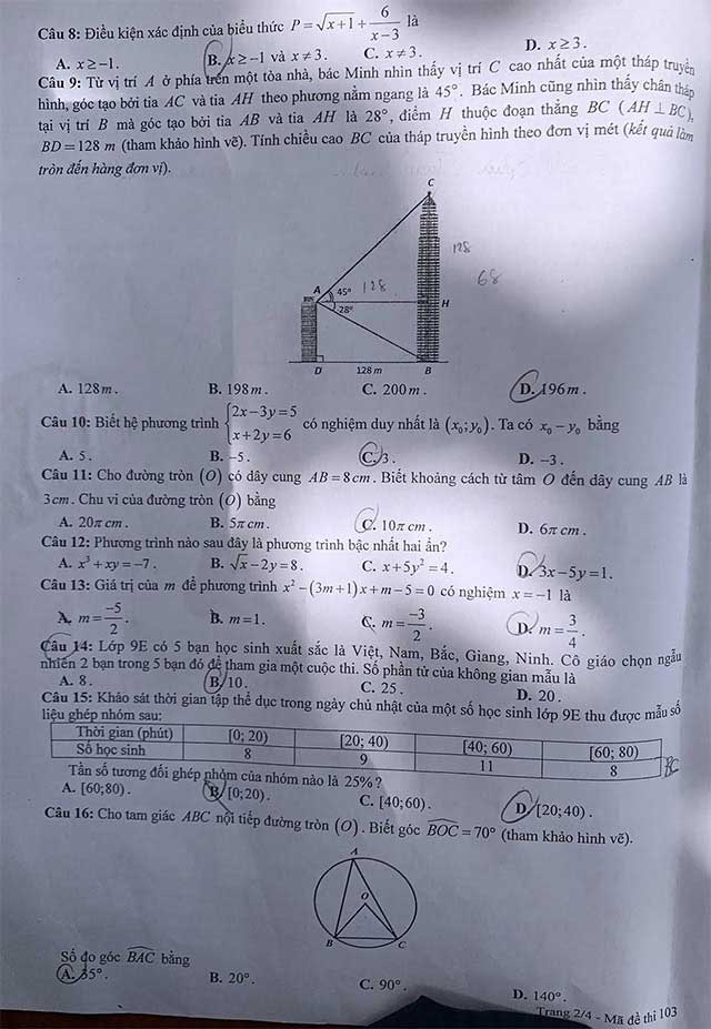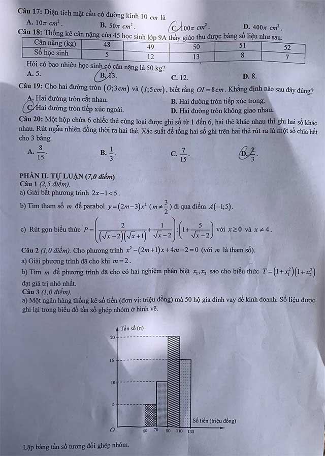 Đáp án đề thi vào 10 Bắc Giang môn Toán đang được các thầy cô giải. Các em chờ 1 lúc rồi nhấn F5 để xem đáp án.