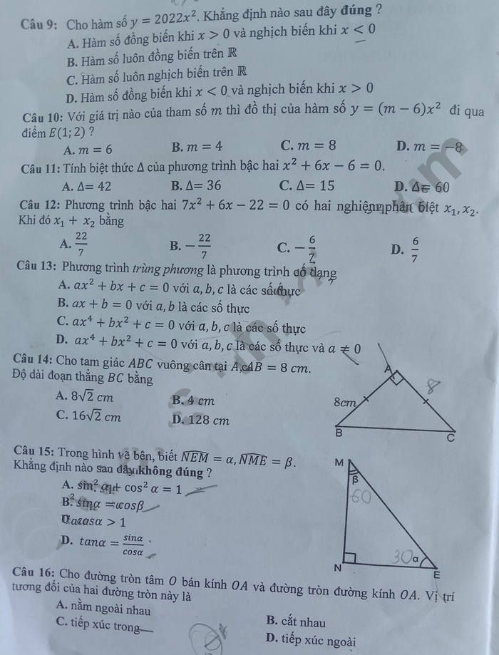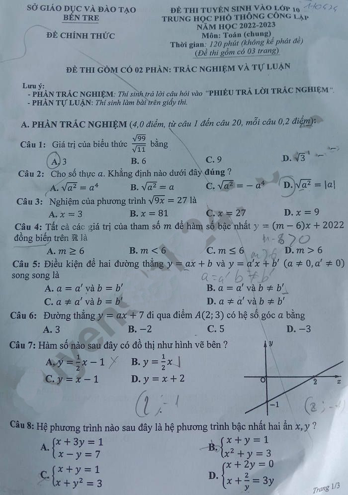 - Đề thi vào lớp 10 2022 môn Toán Bến Tre