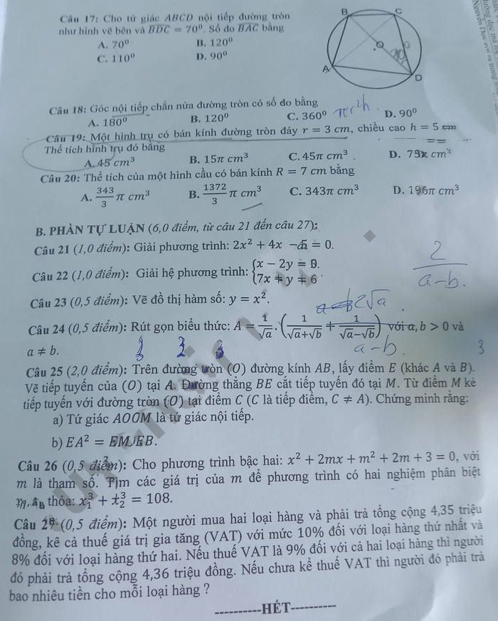 Đáp án đề thi tuyển sinh lớp 10 môn Toán Bến Tre 2024 đang được các thầy cô giải. Các em nhấn F5 liên tục để xem đáp án mới nhất.