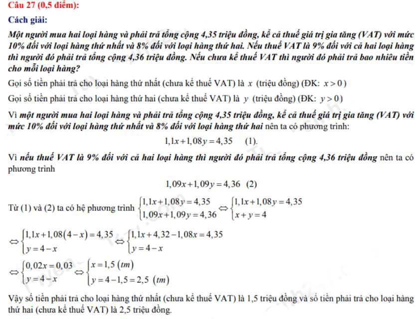 - Đáp án đề thi vào lớp 10 năm 2021 môn Toán tỉnh Bến Tre