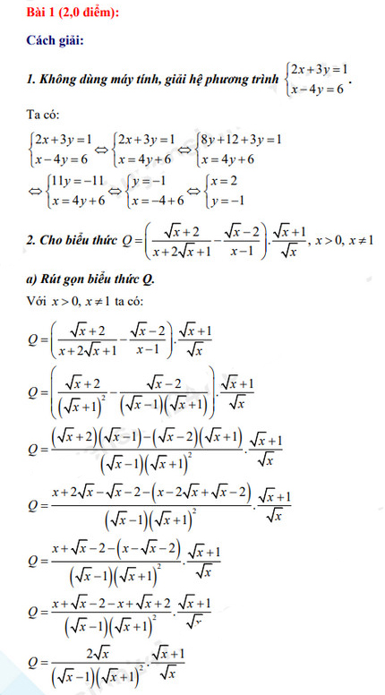 1. Đáp án đề thi vào lớp 10 môn Toán Bình Định 2025