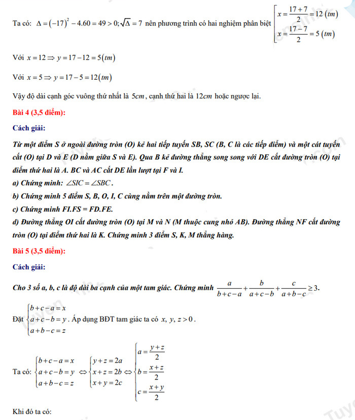 - Đáp án đề thi tuyển sinh lớp 10 môn Toán Bình Định 2023