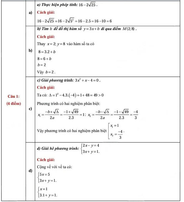 1. Đáp án đề thi tuyển sinh lớp 10 môn Toán Cao Bằng 2025 - 2026