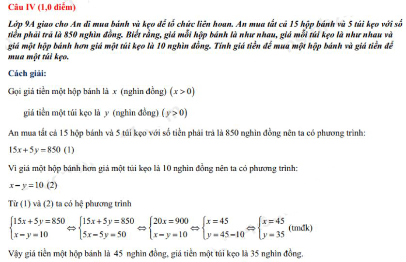 Đáp án đề thi vào lớp 10 năm 2021 môn Toán tỉnh Hà Nam
