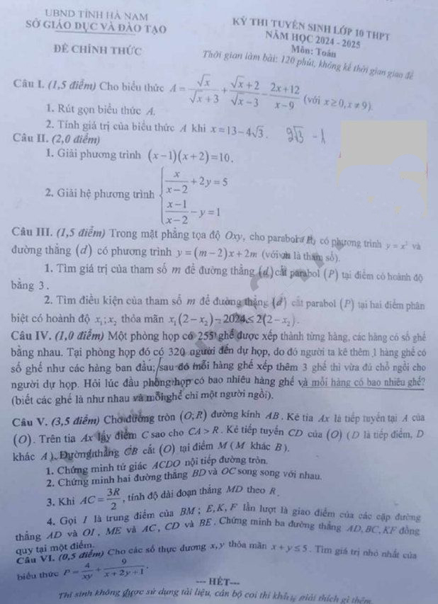 - 2. Đề thi vào lớp 10 môn Toán Hà Nam 2025