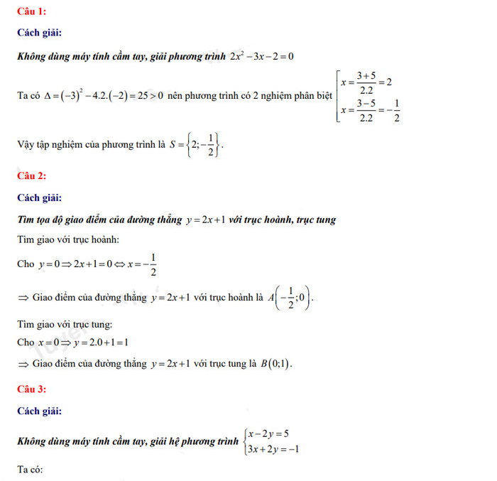 1. Đáp án đề thi vào lớp 10 môn Toán Thái Nguyên 2025
